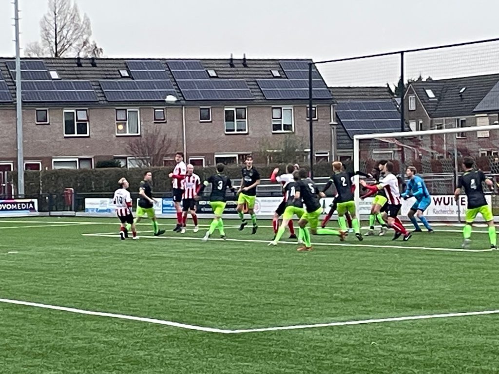 Na de opsteker tegen Meervogels 31 zou je verwachten dat Valken er tegen Spartanen tegenaan zou gaan. Toch was dat niet zo. Het spel was lange tijd behoudend en daarmee kon het aanvallender ingestelde Spartanen goed in zijn spel komen en vele kansen afdwingen. Valken mocht van geluk spreken dat Spartanen bij veel van die kansen het vizier niet scherp had afgesteld. Bij rust was het nog 0-0 maar in de tweede helft kwam de thuisploeg al snel op een 1-0 voorsprong. Valken zocht inmiddels ook wel iets meer de aanval en bij een overtreding op Alain de Leth in het strafschopgebied kreeg Valken een terechte penalty toegekend. Niels Timmer schoot vanaf de elfmeterstip de gelijkmaker goed binnen. Het plezier over de gelijkmaker was van zeer korte duur. Spartanen bleef naar hartelust aanvallen en maakte met een fraaie goal de 2-1. Daar zou het wat de score betreft bij blijven. Het slotoffensief van Valken leverde helaas niets meer op.
