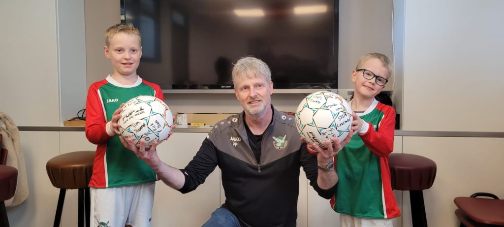 Na de wedstrijd kreeg ik nog een bal met alle namen van het team erop.